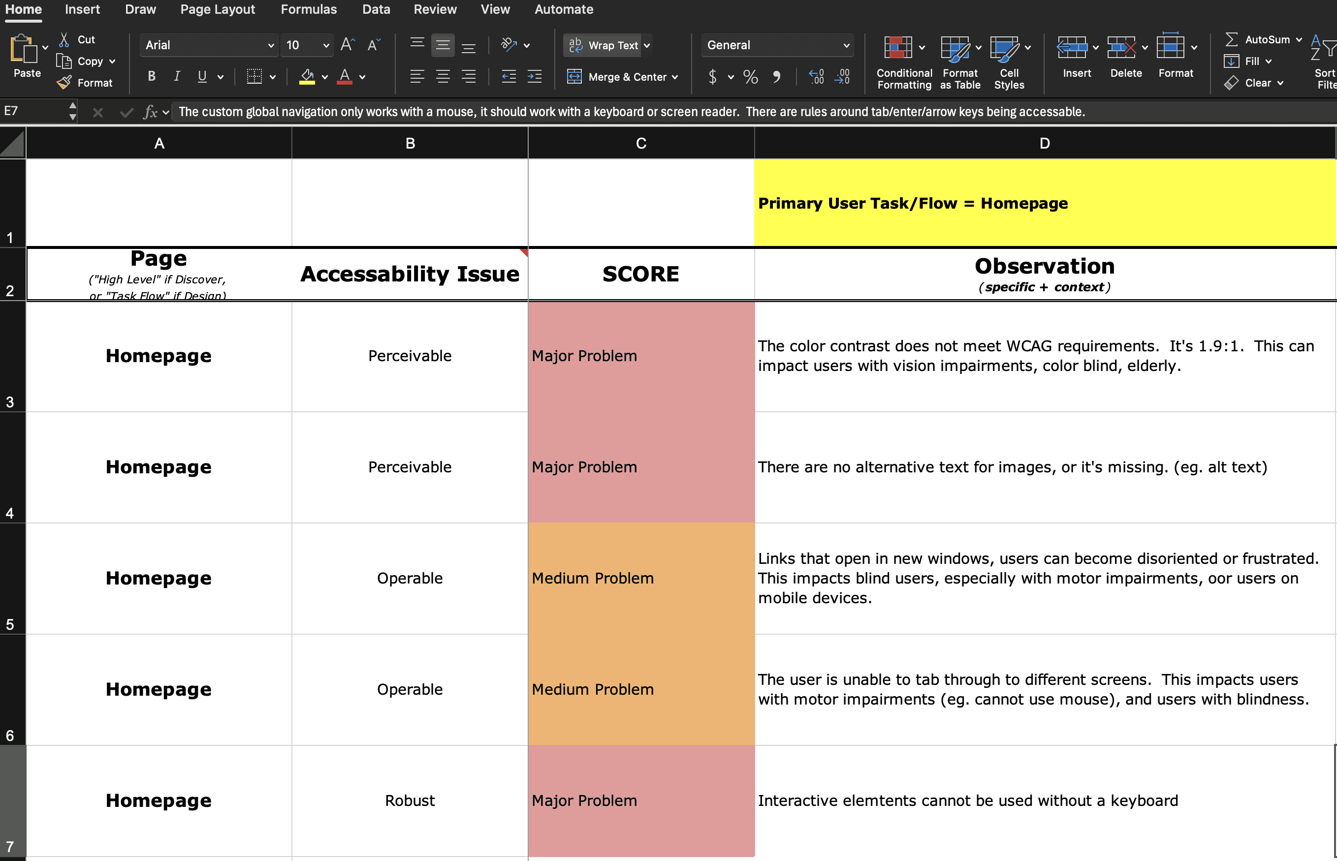 The surface assumption was that accessibility had been “handled” because it had been discussed earlier in the process. In practice, several issues only become visible when you test systematically and step through the interface the way assistive technologies or keyboard-only users would. In the review document, you can see where screen reader labeling, focus order, contrast ratios, and interactive targets required refinement. The gaps were not dramatic, but they accumulated in ways that could create friction or exclusion. The issue was not negligence. It was the difference between intention and verification.