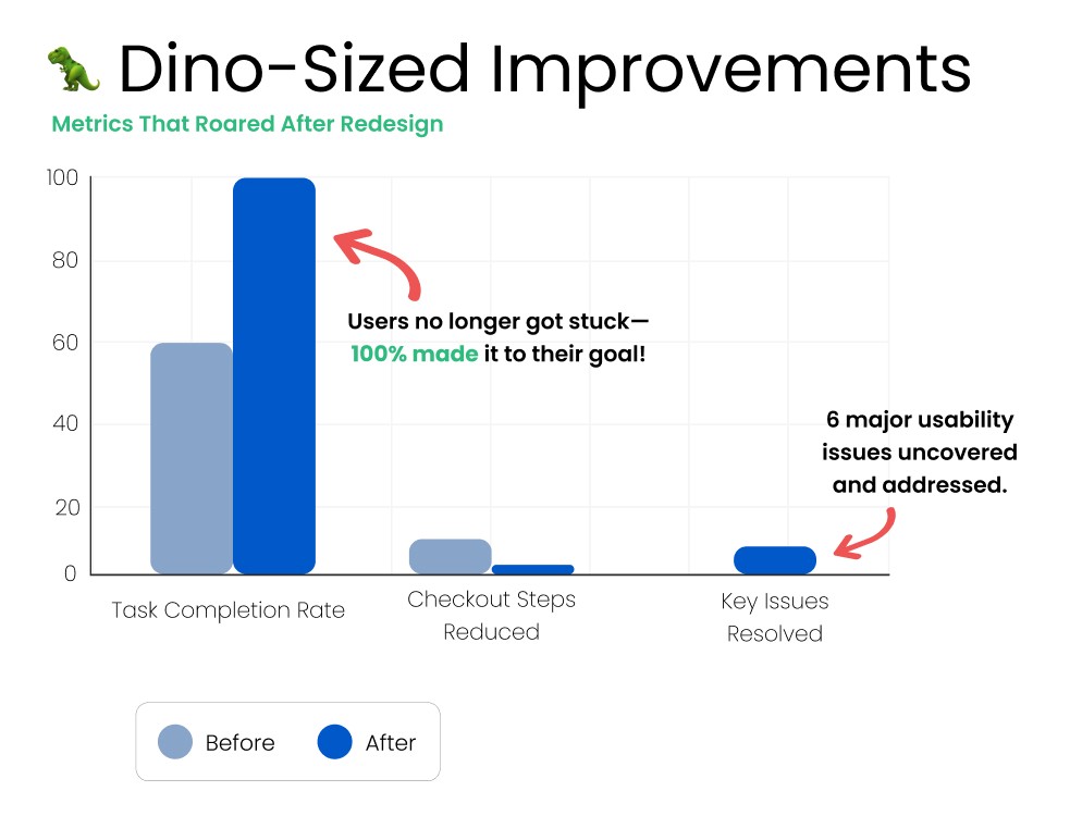 To redesign The Dinosaur Farm’s e-commerce experience, I first needed to deeply understand both the business and its customers. Through speaking directly with users, heuristics, and competitor benchmarking, I uncovered key user frustrations and identified opportunities to improve search, product discovery, and trust-building—without losing the authenticity of this small business.